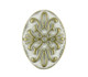 Design: Floral Filigree Ellipse Metal Shank Buttons in Brass White Patina Color Size: 15mm X 11mm (Approx 5/8 inch X 7/16 inch) Shank Hole Size: 3mm Quantity: 1 piece