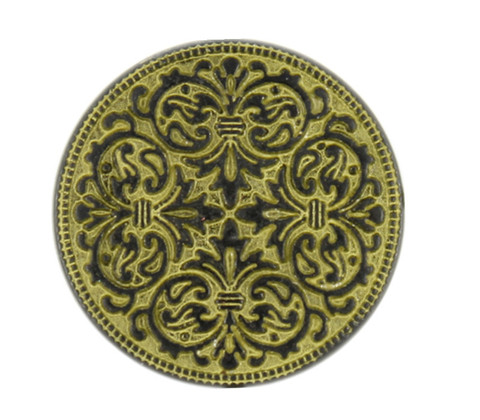 Design: Mandala Pattern Gunmetal Yellow Metal Shank Buttons Size: 18mm (Approx 11/16 inch) Shank Hole Size: 3mm Quantity: 1 piece